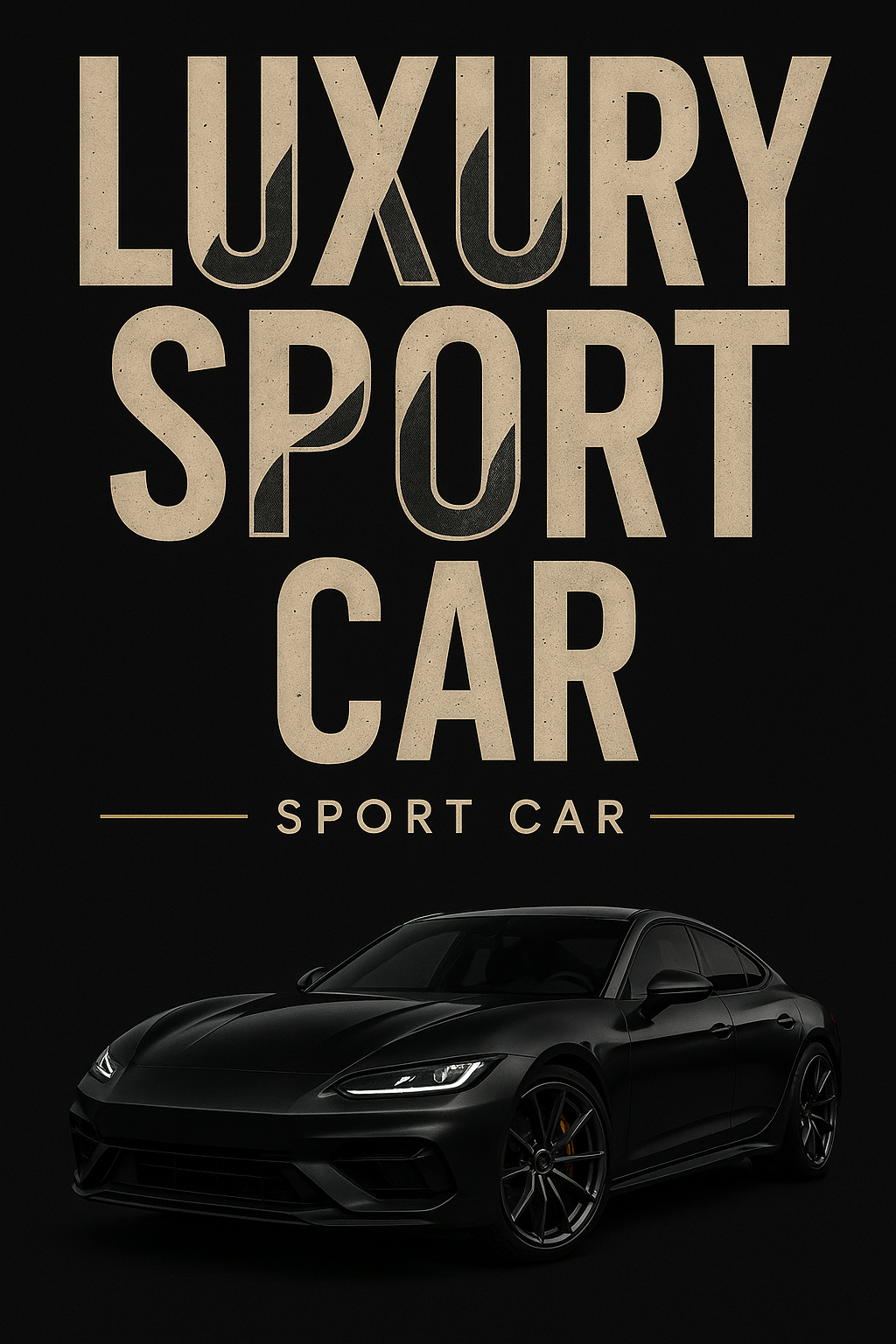 Striking promotional graphic featuring a sleek luxury sport car with bold typography on a dark background, ideal for automotive marketing and advertisements.