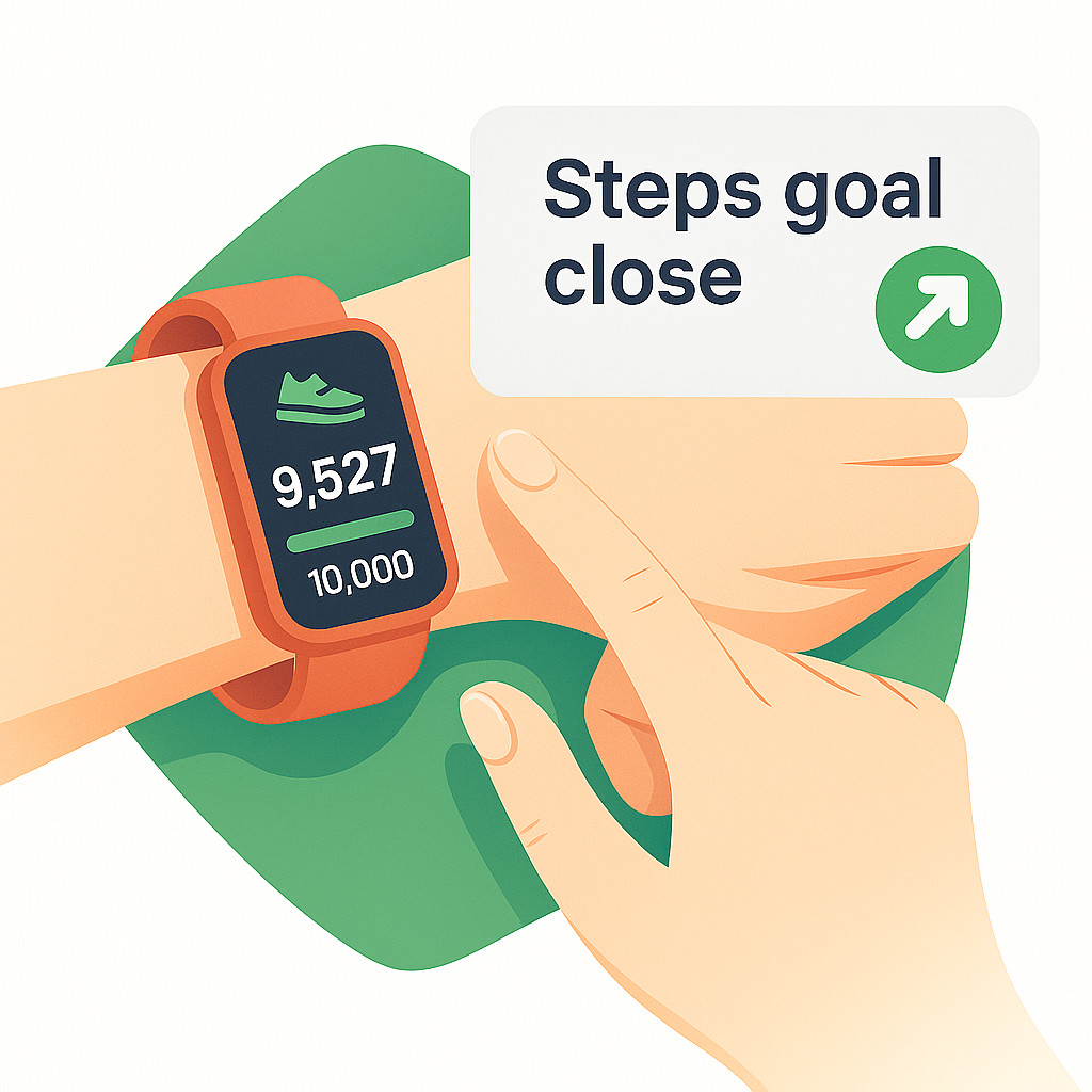 Illustration of a fitness tracker on a wrist, highlighting step goals with a modern design. Ideal for health and fitness-related content.
