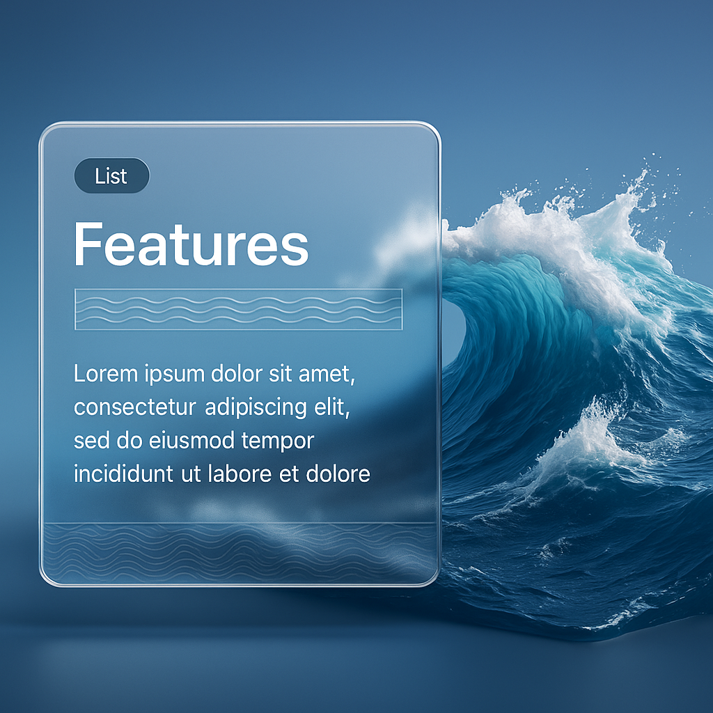 /Collection: /by davooda/Type: PNG/The image features a striking 3D illustration of ocean water waves against a smooth gradient background. A transparent block displays feature text, enhancing the visual appeal.