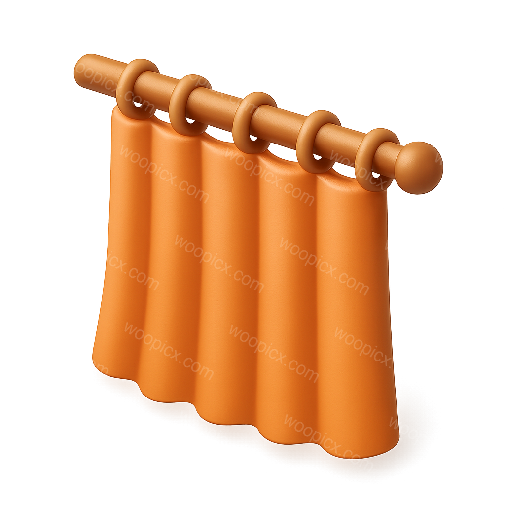 /Premium/Collection: /by davooda/Type: PNG/A stylized 3D curtain icon displayed in an isometric view, featuring smooth, rounded edges and an orange color scheme. The curtain hangs from a rod with circular rings, set against a soft gradient background.