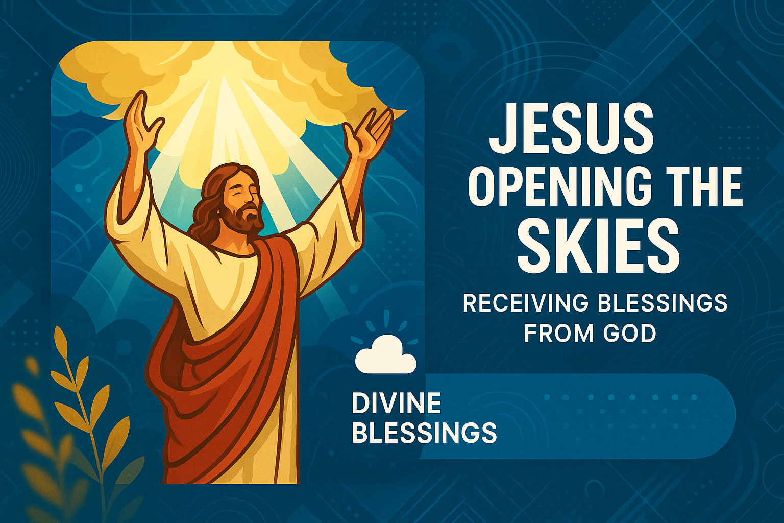 /Collection: /by davooda/Type: PNG/Vivid illustration of Jesus with arms raised, symbolizing divine blessings and connection to God. Suitable for religious themes and spiritual content.
