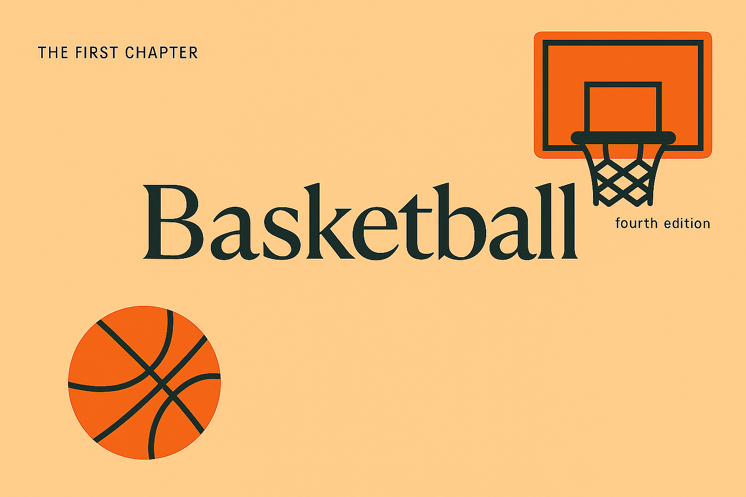 /Collection: /by davooda/Type: PNG/A vibrant book cover featuring the title 'Basketball' in bold typography, complemented by a basketball graphic and a hoop, set against a warm orange background.
