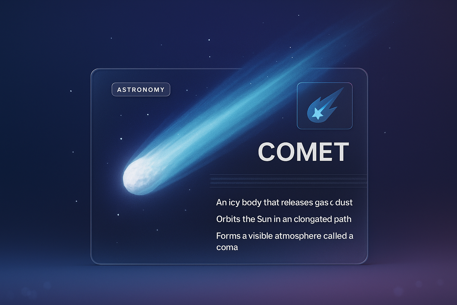Stunning 3D Illustration of a Comet with Informative Overlay