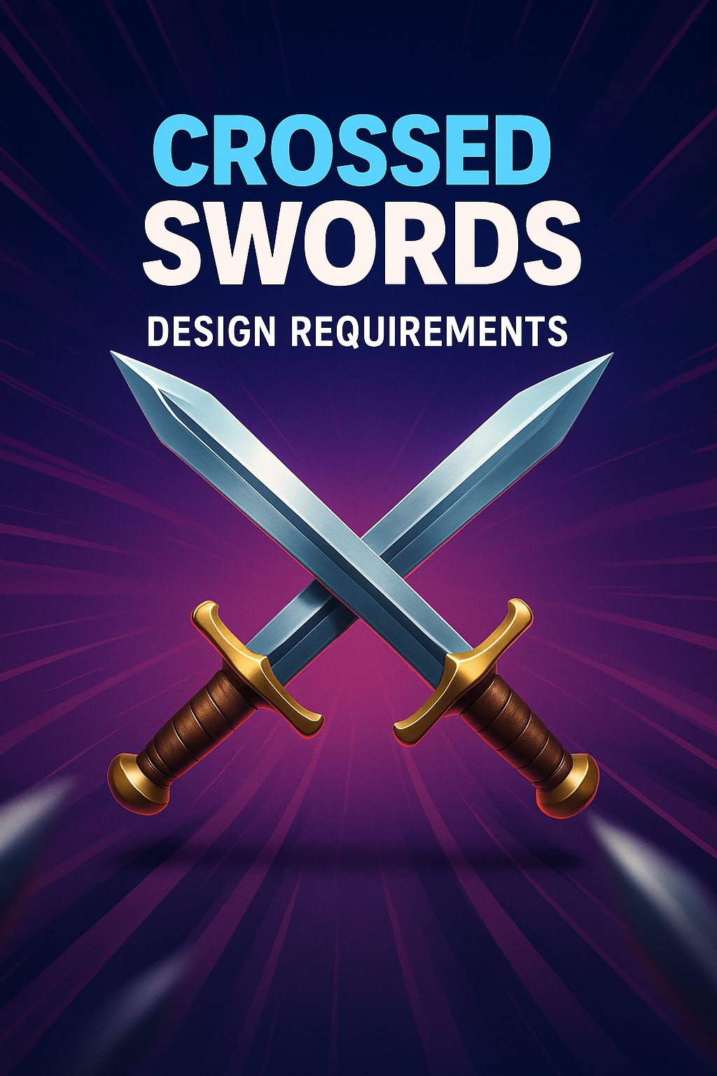 This image features a bold graphic of crossed swords, ideal for design requirements. The vibrant colors and dynamic background emphasize a competitive theme, suitable for gaming or design contexts.