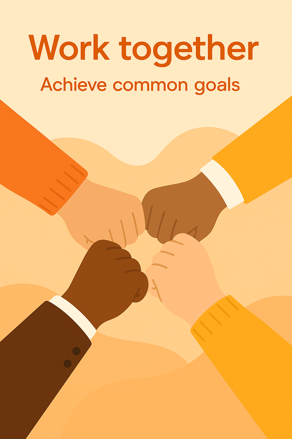 Illustrative graphic depicting diverse hands in a fist bump, symbolizing collaboration and unity. Ideal for motivational content and team-building materials.