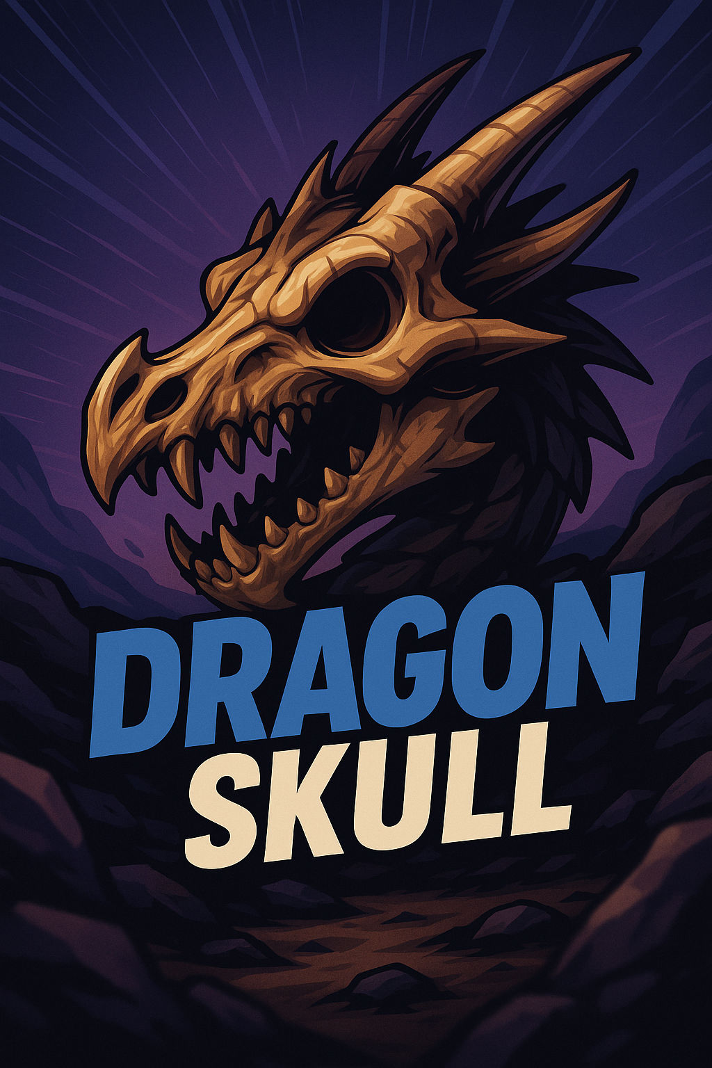 /Collection: /by davooda/Type: PNG/A dramatic 3D illustration of a dragon skull set against a vibrant gradient background. Bold typography emphasizes the title, creating an engaging visual impact.