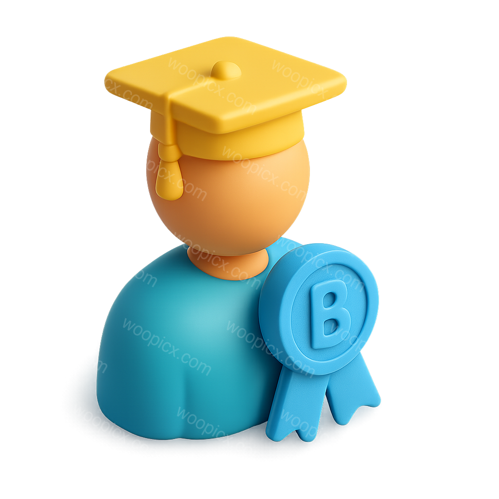 /Premium/Collection: /by davooda/Type: PNG/A colorful 3D isometric icon depicting a graduate wearing a yellow cap and a blue ribbon award, set against a soft gradient background, showcasing a volumetric design.