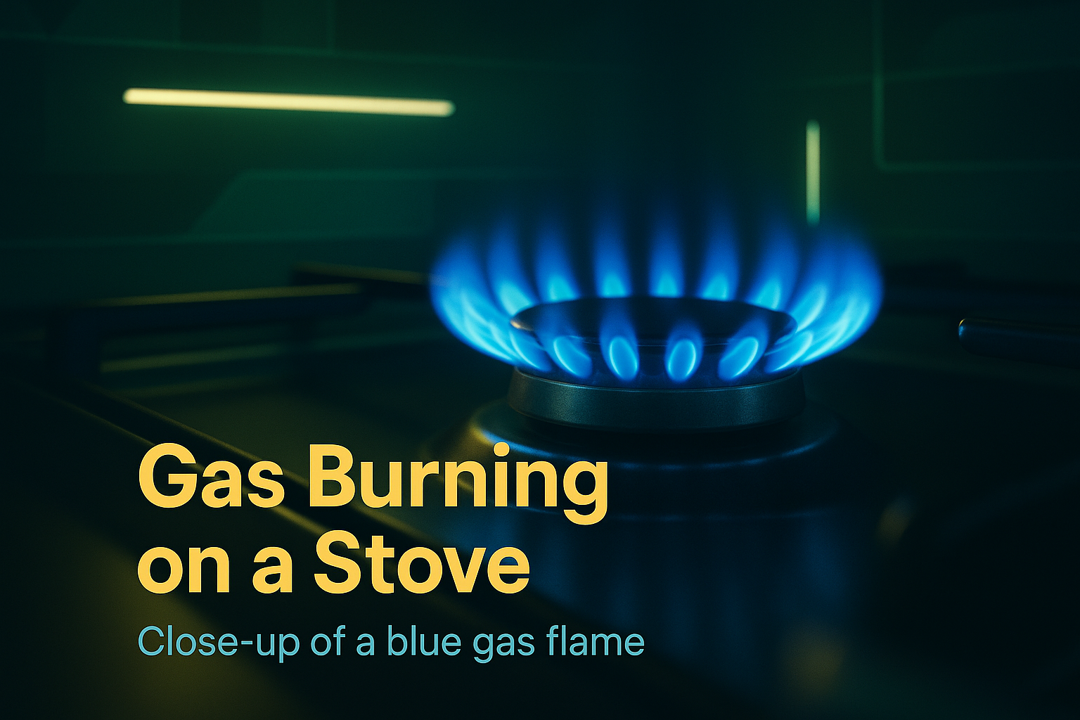 A detailed close-up image showcasing a vibrant blue gas flame burning on a stove, ideal for kitchen appliance promotions or energy efficiency discussions.