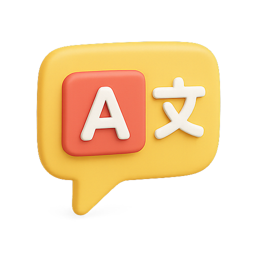 A vibrant 3D icon representing language learning, featuring a speech bubble with stylized letters, ideal for educational apps or websites.