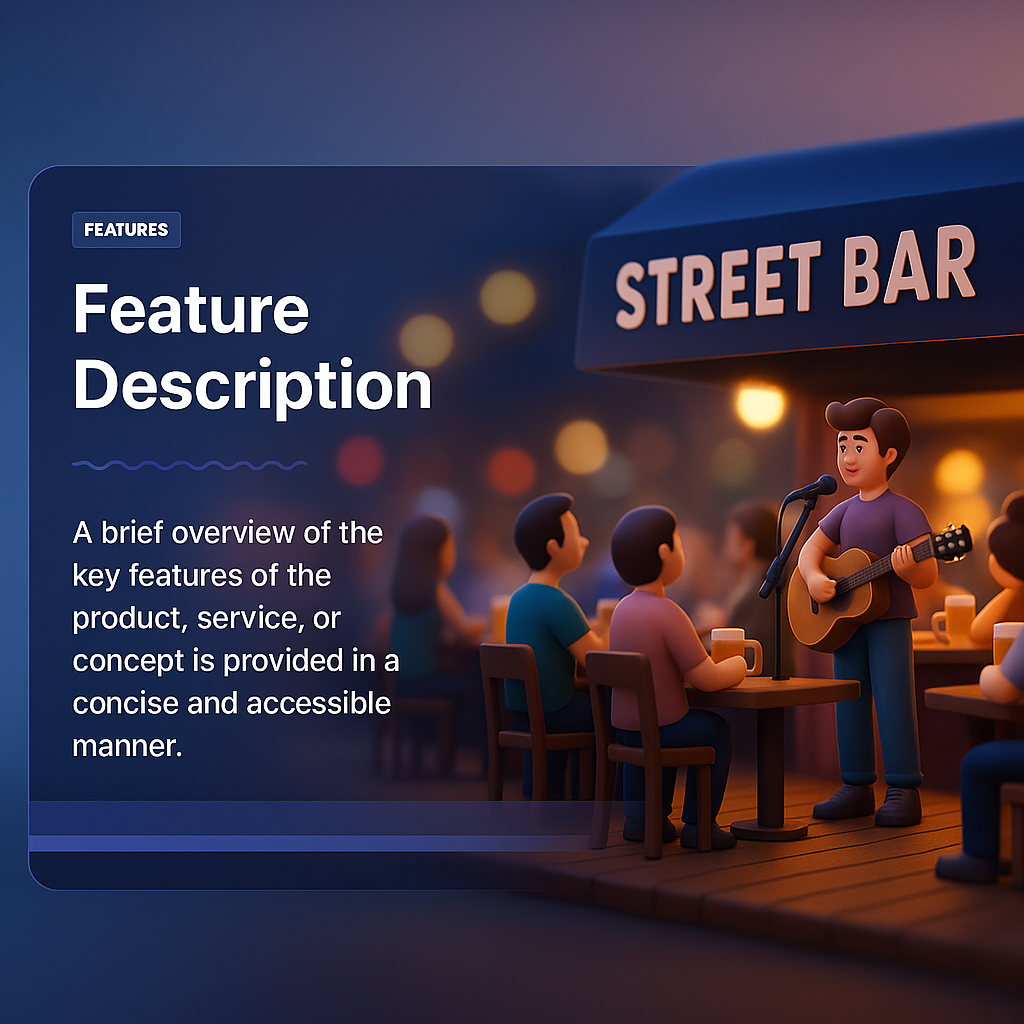 3D Illustration of a Stylish Drinks Bar with Features Overview