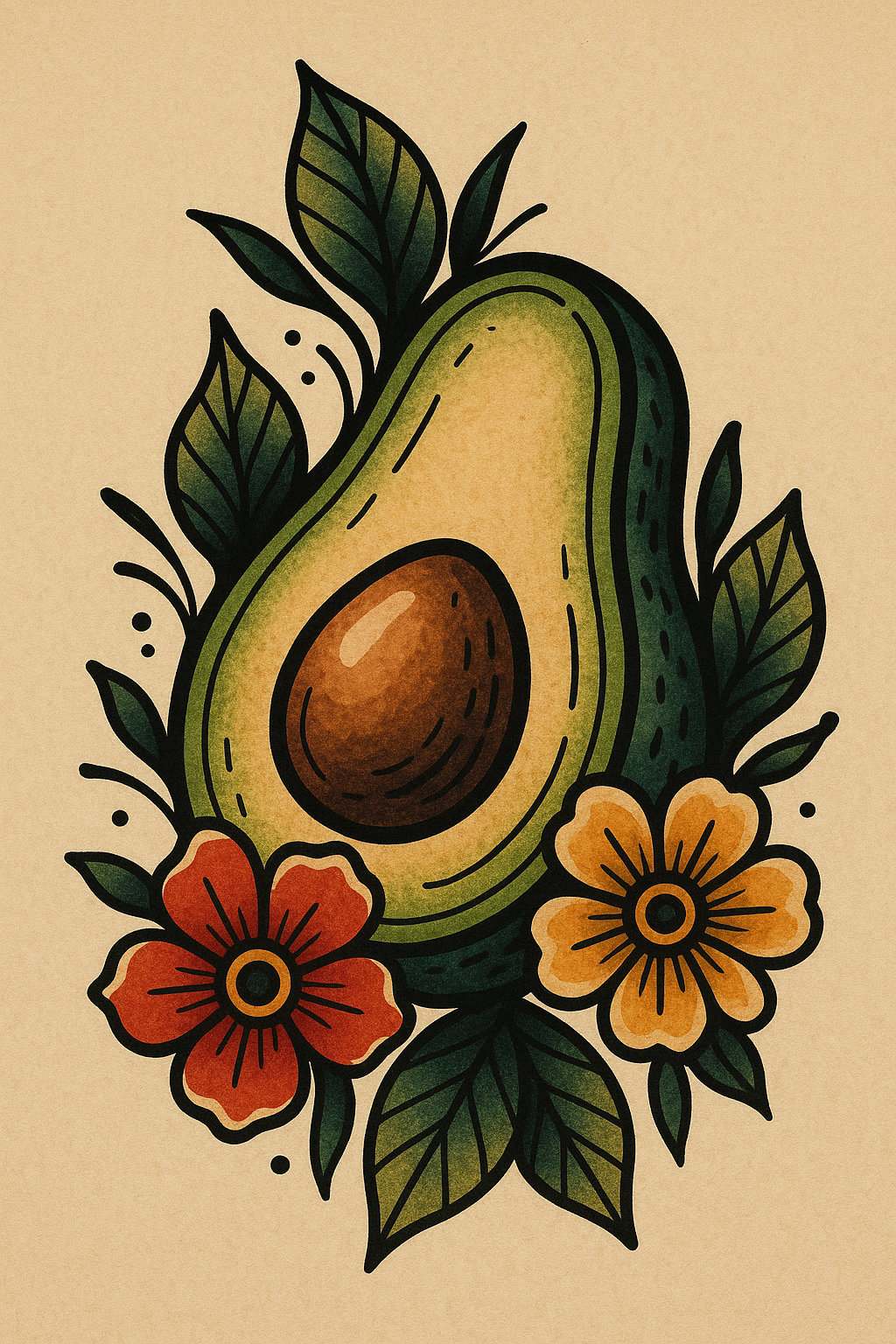 Colorful Avocado Illustration with Flowers