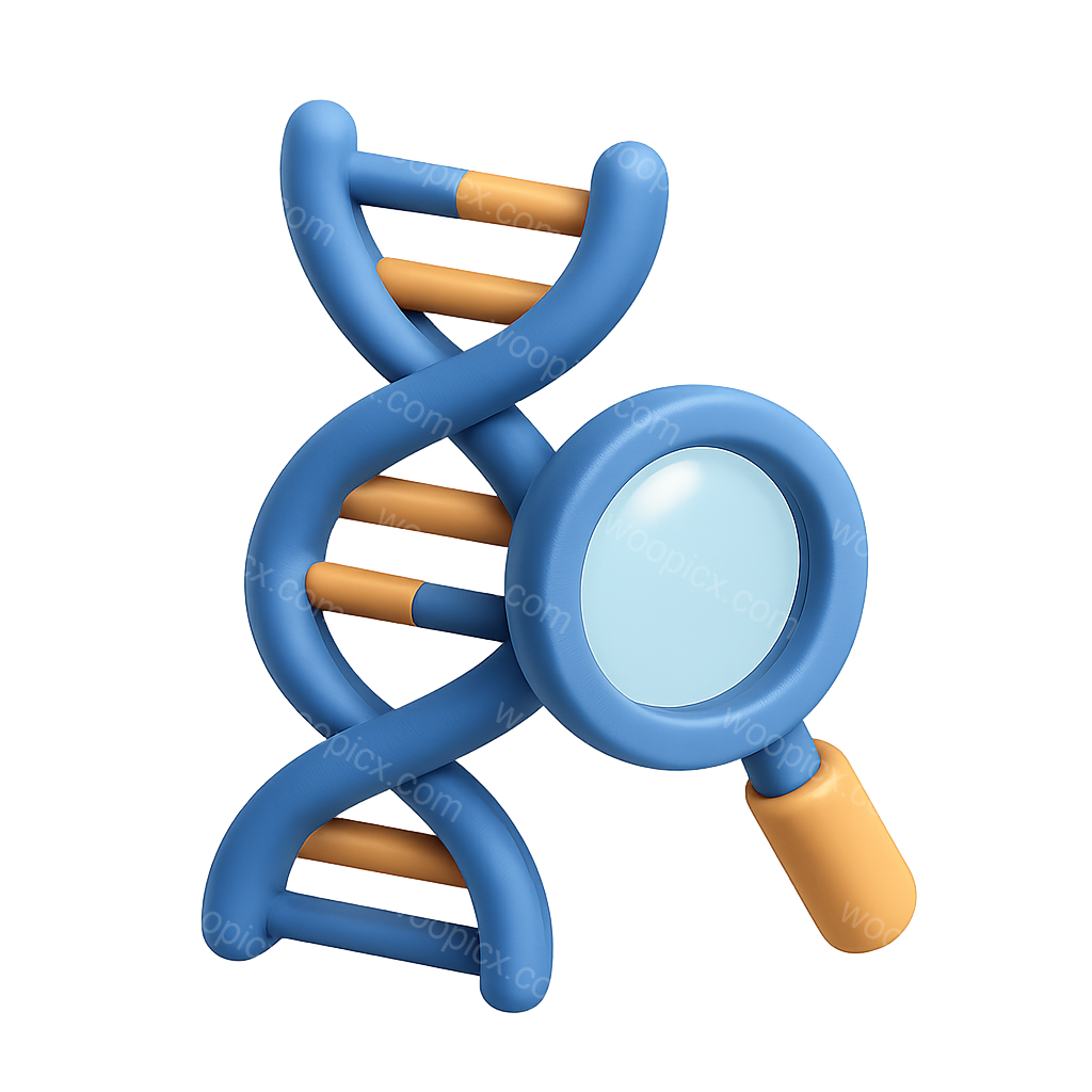 /Premium/Collection: /by davooda/Type: PNG/This image features a 3D representation of a DNA helix combined with a magnifying glass, showcasing a colorful design. The helix is viewed in a three-quarter perspective, giving it a volumetric feel against a transparent background.