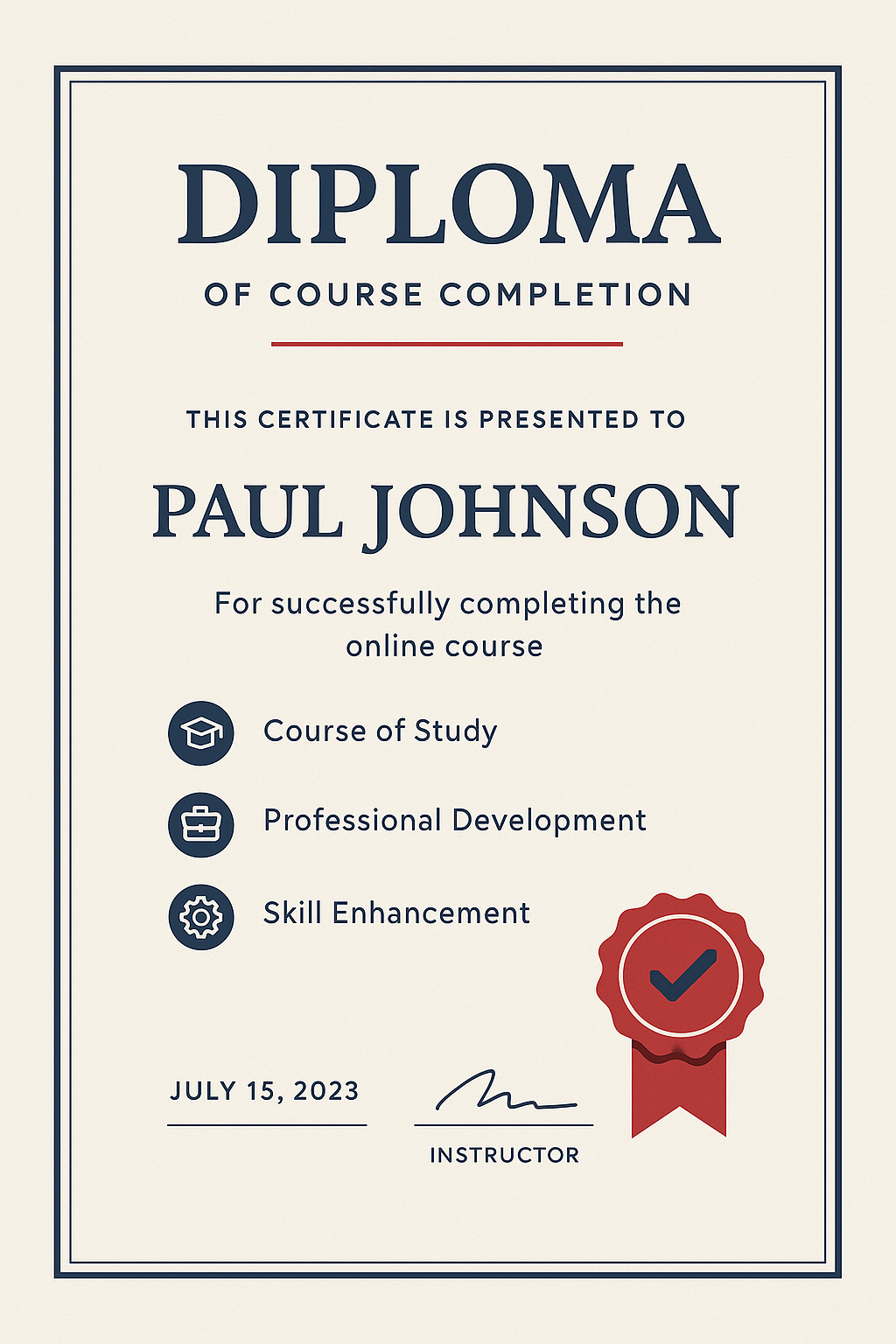/Collection: /by davooda/Type: PNG/Elegant diploma certificate design showcasing course completion details, ideal for educational institutions or online courses. Features a classic layout with decorative elements.