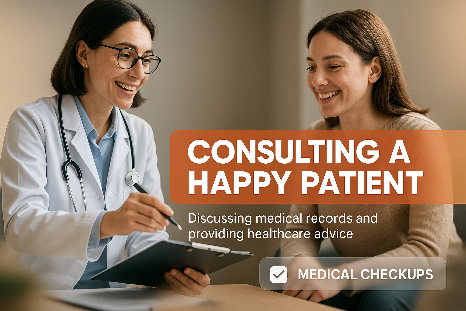 /Collection: /by davooda/Type: PNG/A professional healthcare consultation image showcasing a doctor discussing medical records with a patient. The warm tones and friendly expressions create an inviting atmosphere, ideal for medical websites or promotional materials.