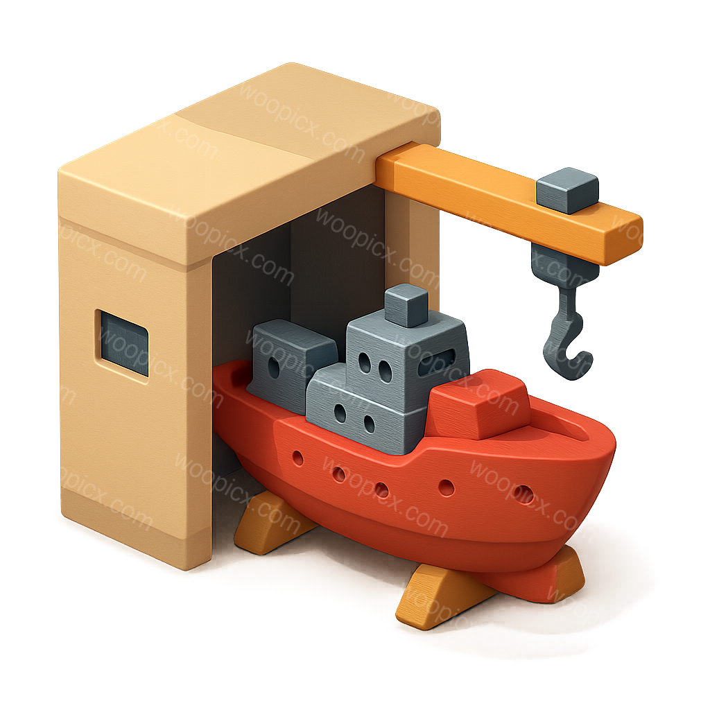 3D Icon of a Ship in a Dock with Crane