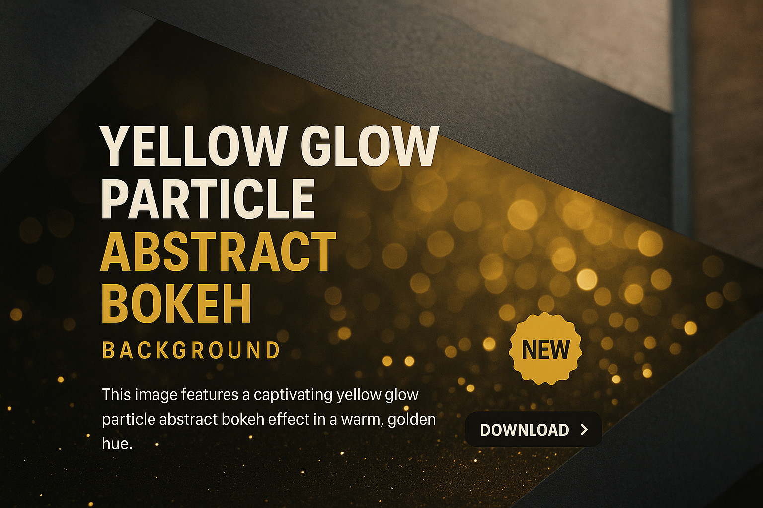 This image showcases a vibrant yellow glow particle abstract bokeh background, featuring layered elements and a modern design with a call-to-action button.