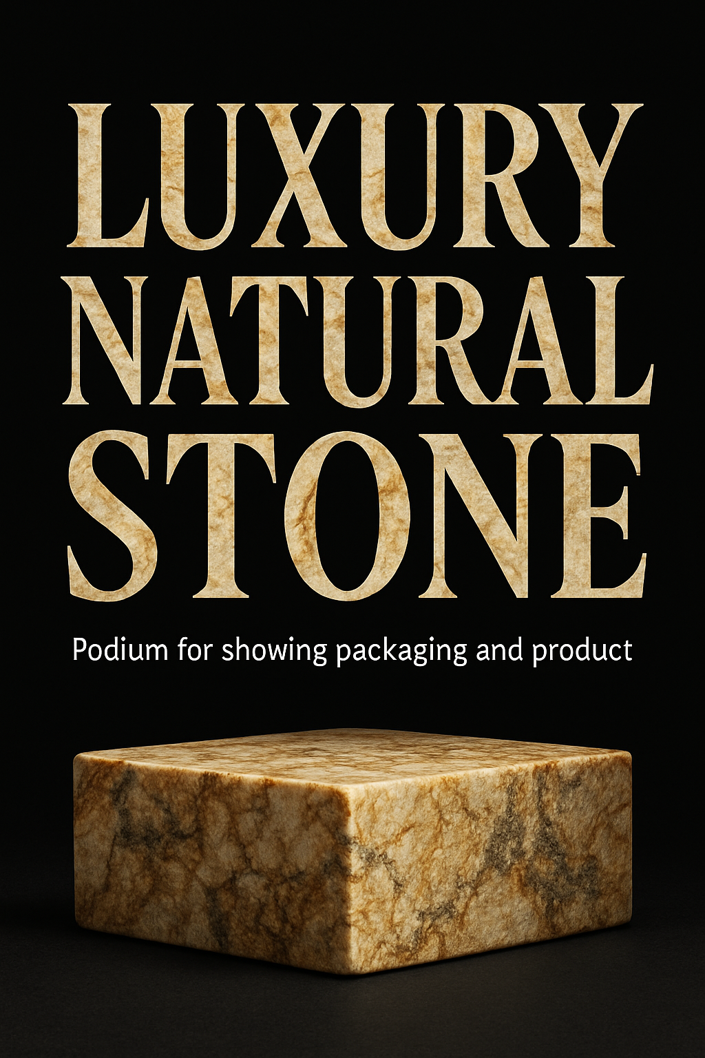 Stylish podium featuring natural stone texture, designed for showcasing luxury products and packaging. Ideal for high-end marketing and presentation.
