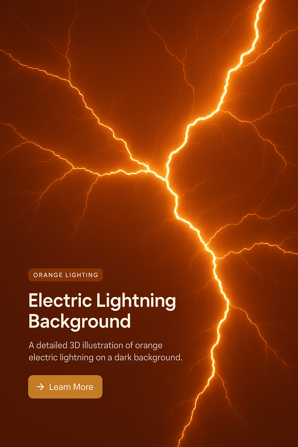 /Collection: /by davooda/Type: PNG/A captivating 3D illustration featuring orange lightning on a dark background, showcasing electric bolts in a layered composition with informative text elements.