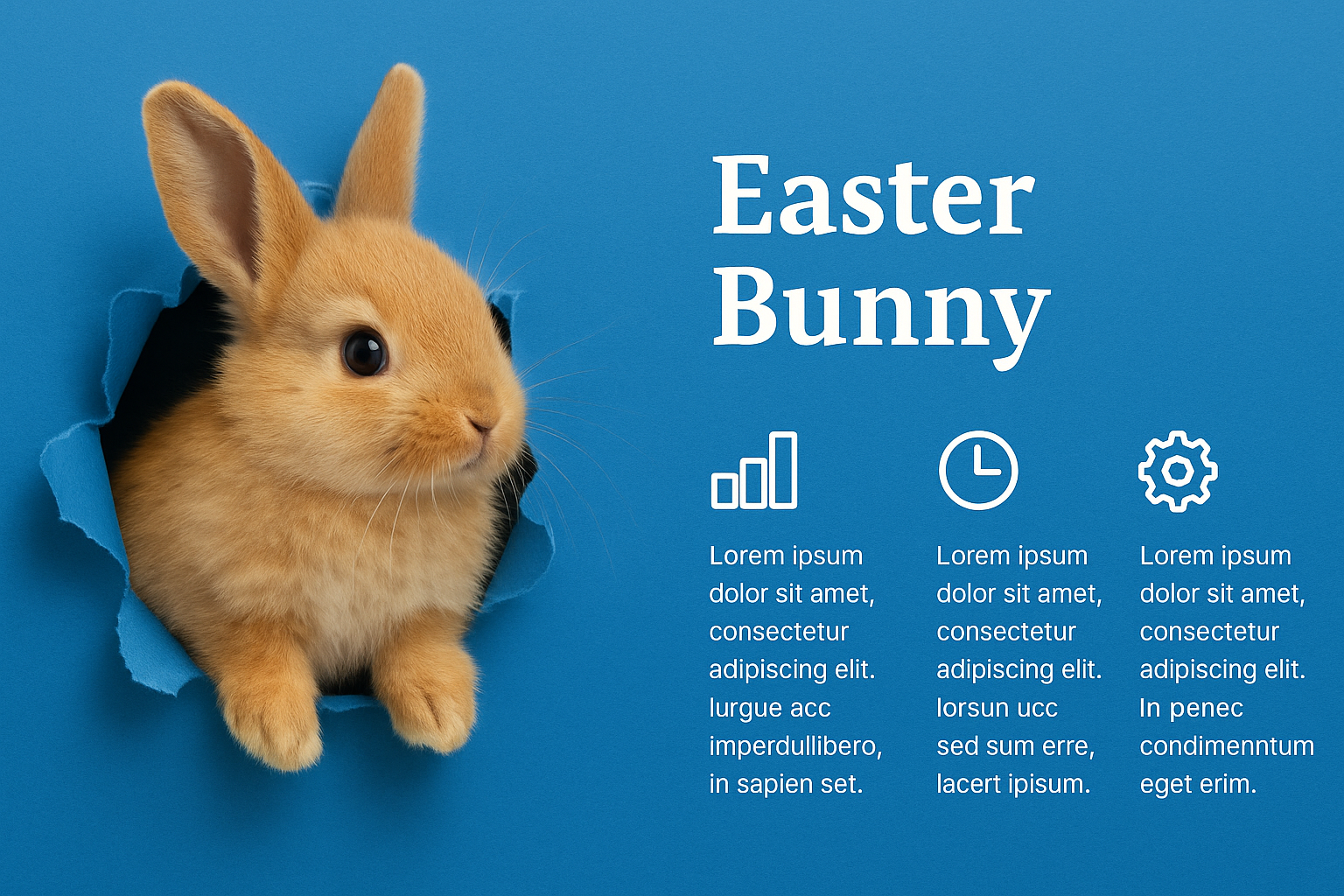 Cute Rabbit Breaking Through Blue Background with Text Overlay