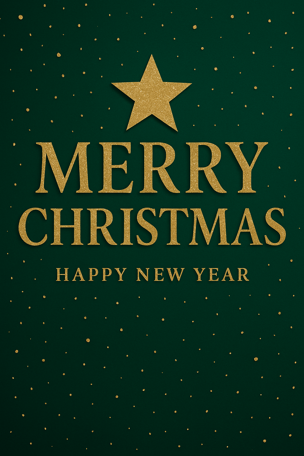 Elegant holiday greeting card featuring gold typography against a green background, perfect for Christmas and New Year celebrations.