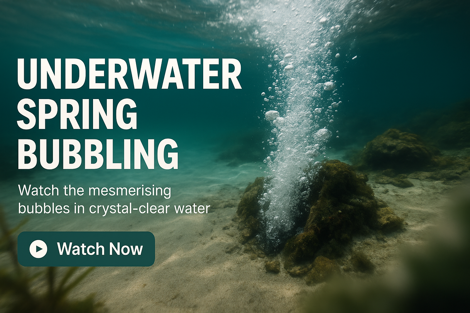 /Collection: /by davooda/Type: PNG/Engaging social media post featuring a serene underwater spring with bubbling water. The clear visuals and inviting text make it perfect for nature enthusiasts and educational content.
