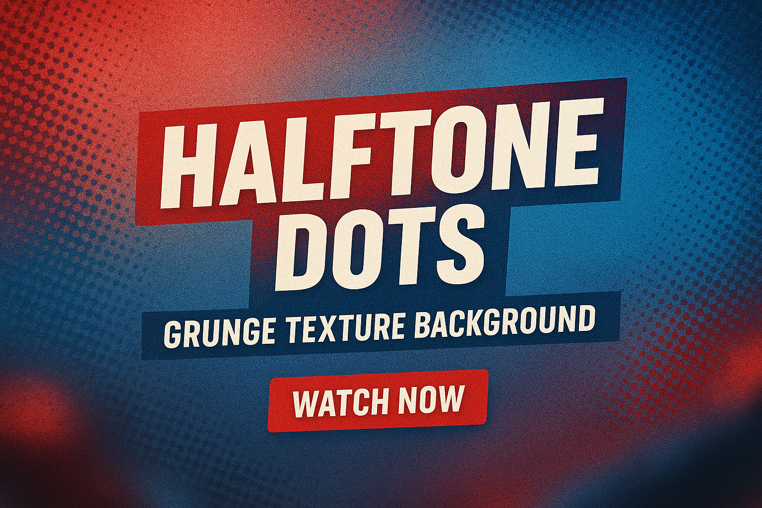 Vibrant graphic featuring a halftone dot pattern with a grunge texture, ideal for promotional content or video call-to-action banners.