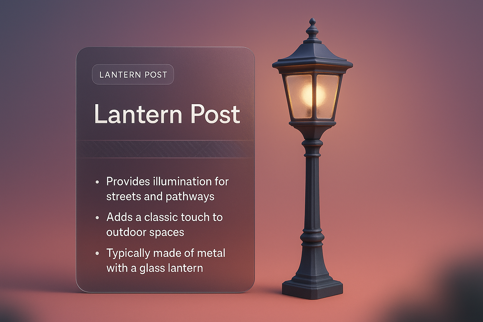 /Collection: /by davooda/Type: PNG/A beautifully rendered 3D illustration of a lantern post, providing a classic touch to outdoor environments. The design features a smooth gradient background and a transparent text panel.