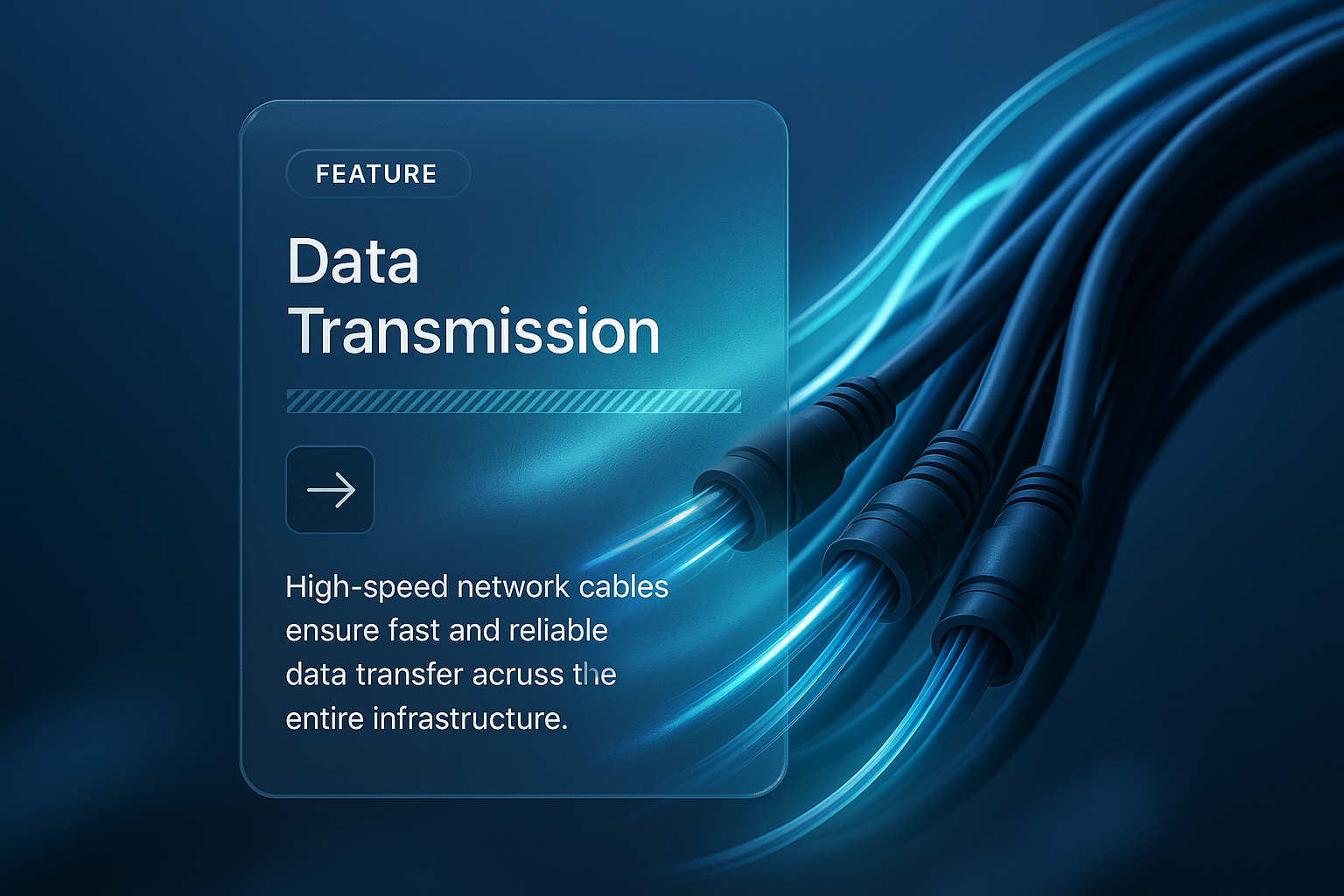 /Collection: /by davooda/Type: PNG/A visually striking 3D illustration of network cables conveying data transmission. The design features a gradient background and a well-integrated feature box highlighting fast data transfer.