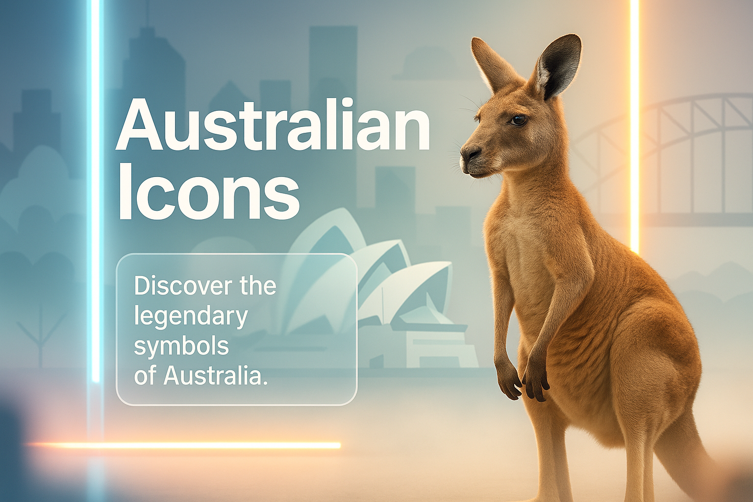 Visually striking promotional image highlighting iconic Australian symbols, featuring a kangaroo in a modern design. Ideal for tourism or cultural campaigns.