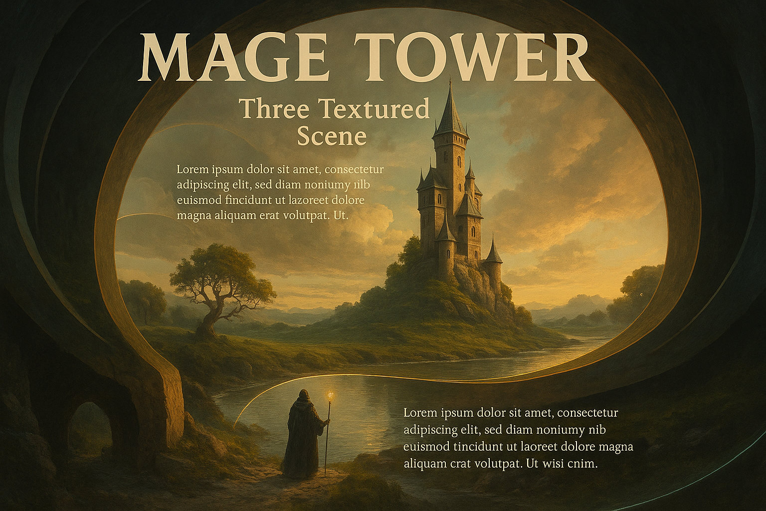 Enchanting Wizard Tower Design Illustration with Text Overlay