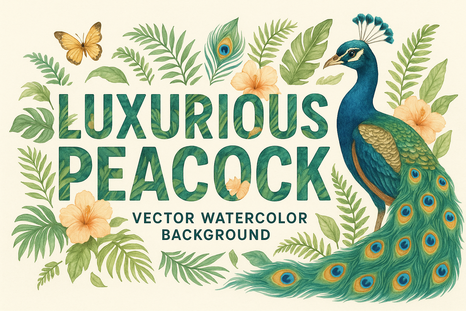 Elegant Watercolor Peacock Illustration with Floral Elements