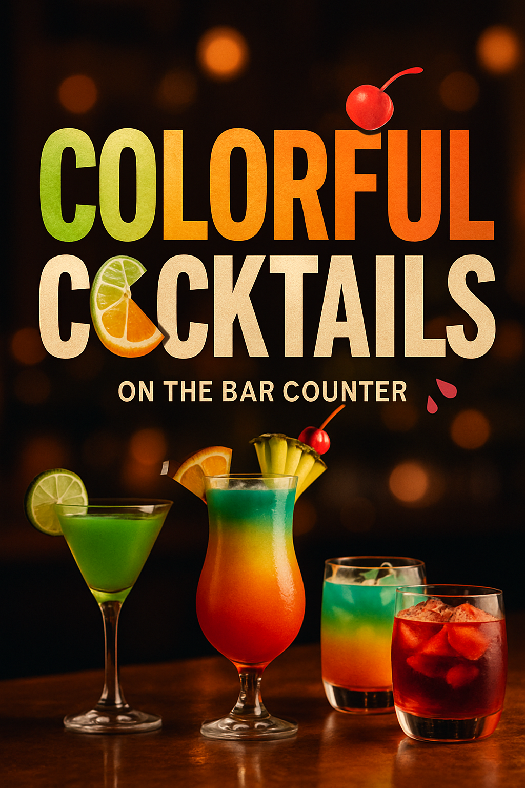 Promotional Cocktail Advertisement Featuring Colorful Drinks