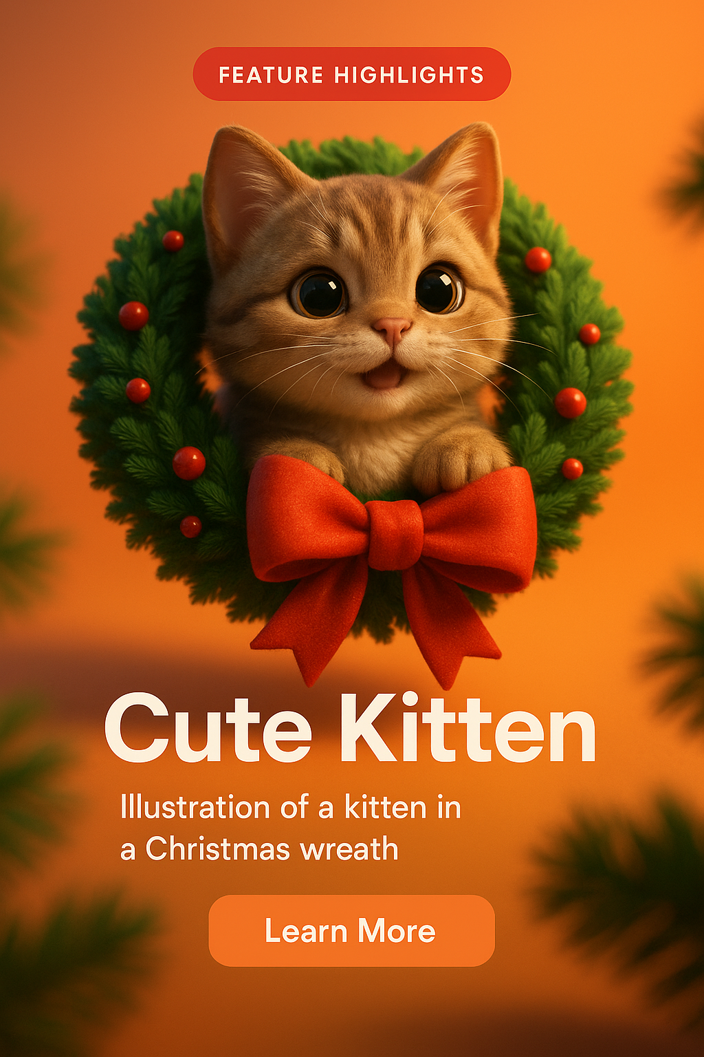 Cute Kitten in a Christmas Wreath Illustration for Holiday Promotions