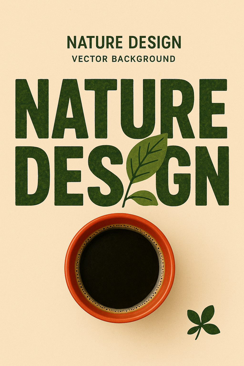 Stylish vector background emphasizing nature with bold typography and a coffee cup, ideal for eco-friendly branding or design projects.