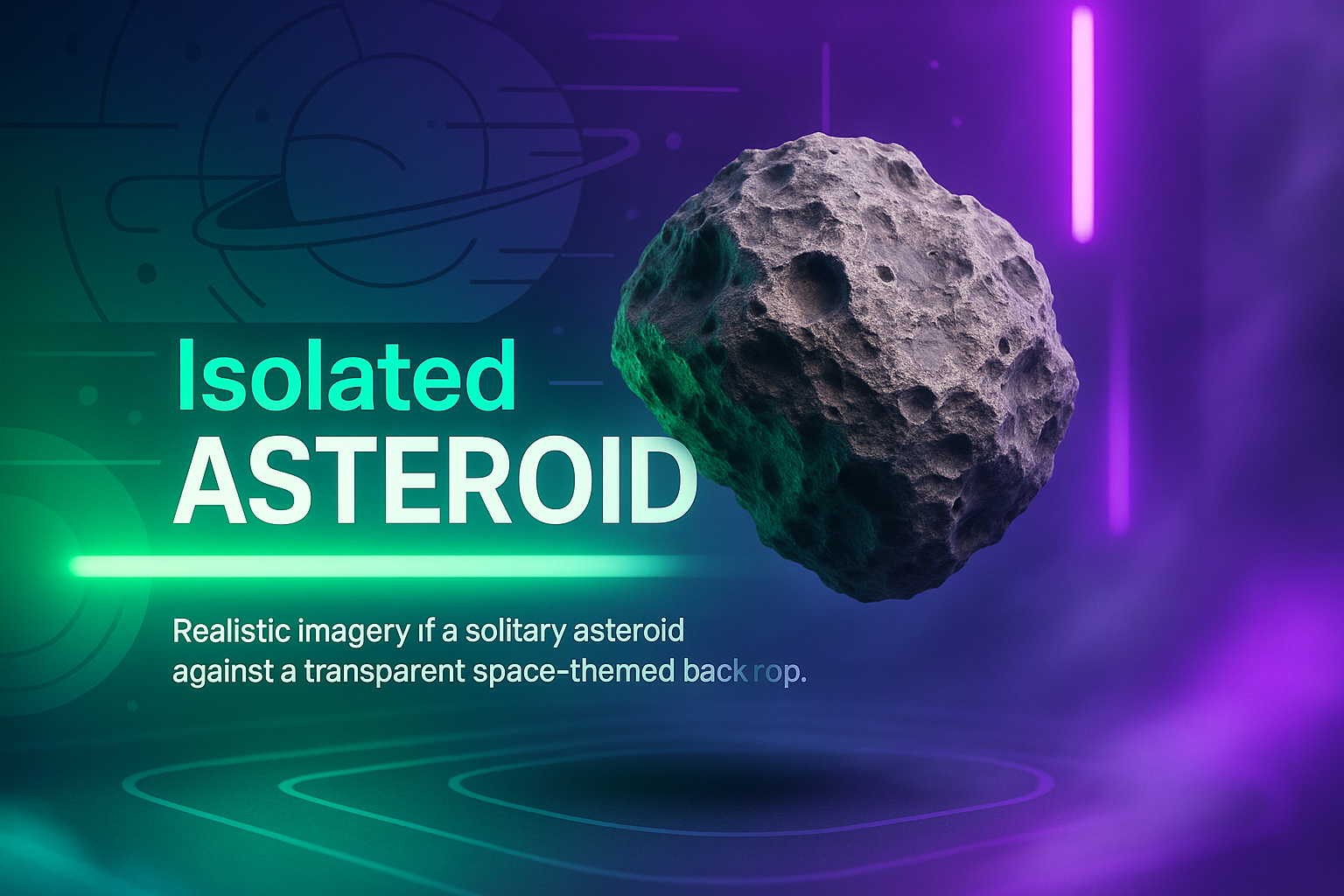 /Collection: /by davooda/Type: PNG/A stunning 3D rendering of an isolated asteroid set against a vibrant, space-themed background. Ideal for educational content, presentations, or digital art showcases.