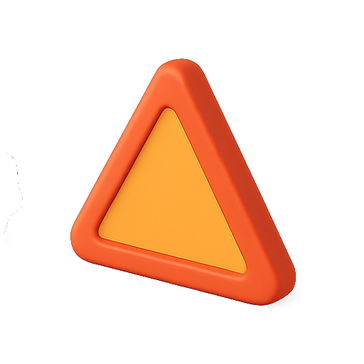 A 3D render of a safety warning triangle featuring a vibrant orange border and a yellow inner triangle, designed for use in safety and emergency contexts.