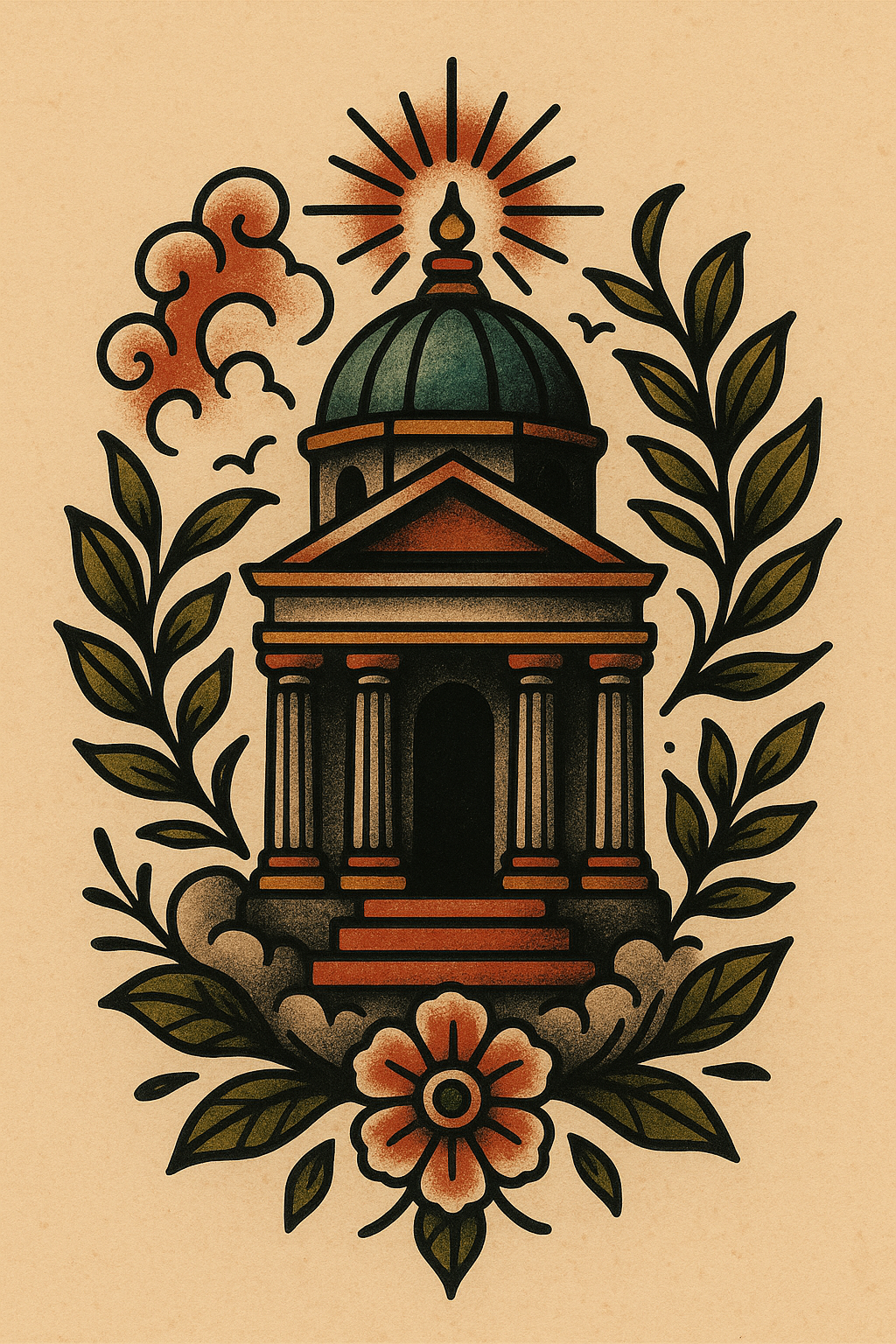 Illustrative Graphic of a Classical Structure Surrounded by Nature