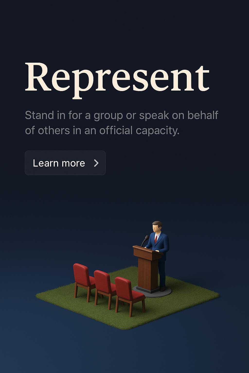 /Collection: /by davooda/Type: PNG/A zoomed-out 3D scene depicting a speaker at a podium with audience chairs, set against a dark gradient background. The design emphasizes realism and clarity.