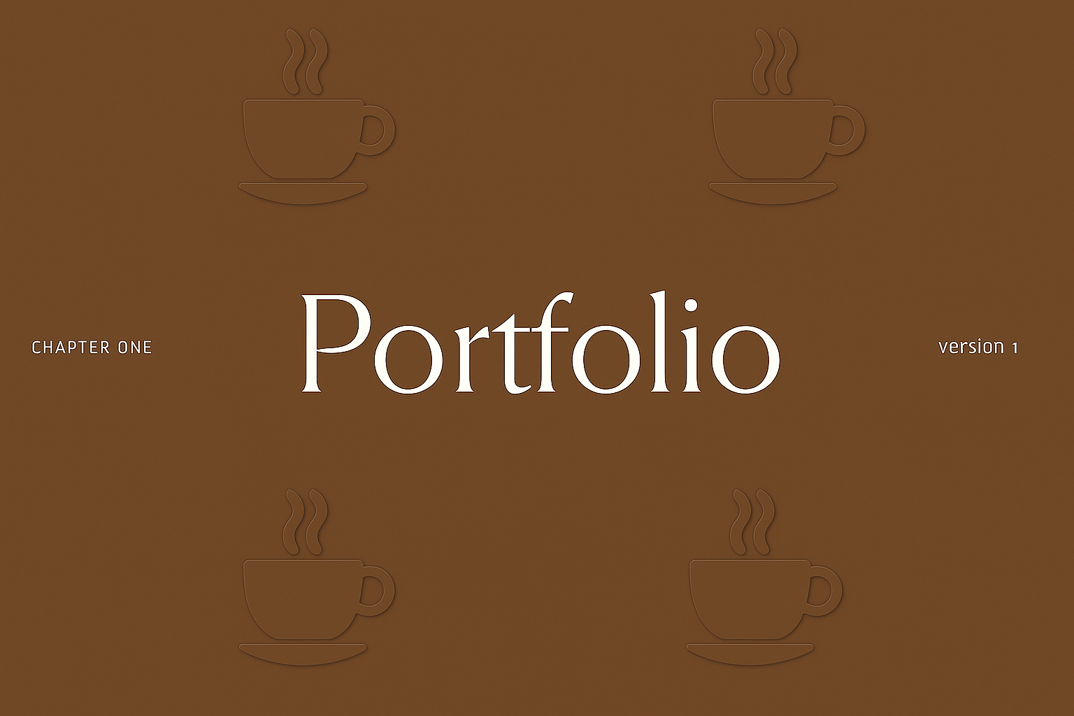 A visually appealing coffee-themed portfolio cover featuring soft brown tones, subtle cup illustrations, and an elegant font for the title.