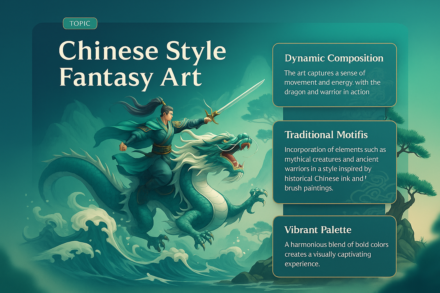 Dynamic Chinese Style Fantasy Art Featuring Dragon and Warrior