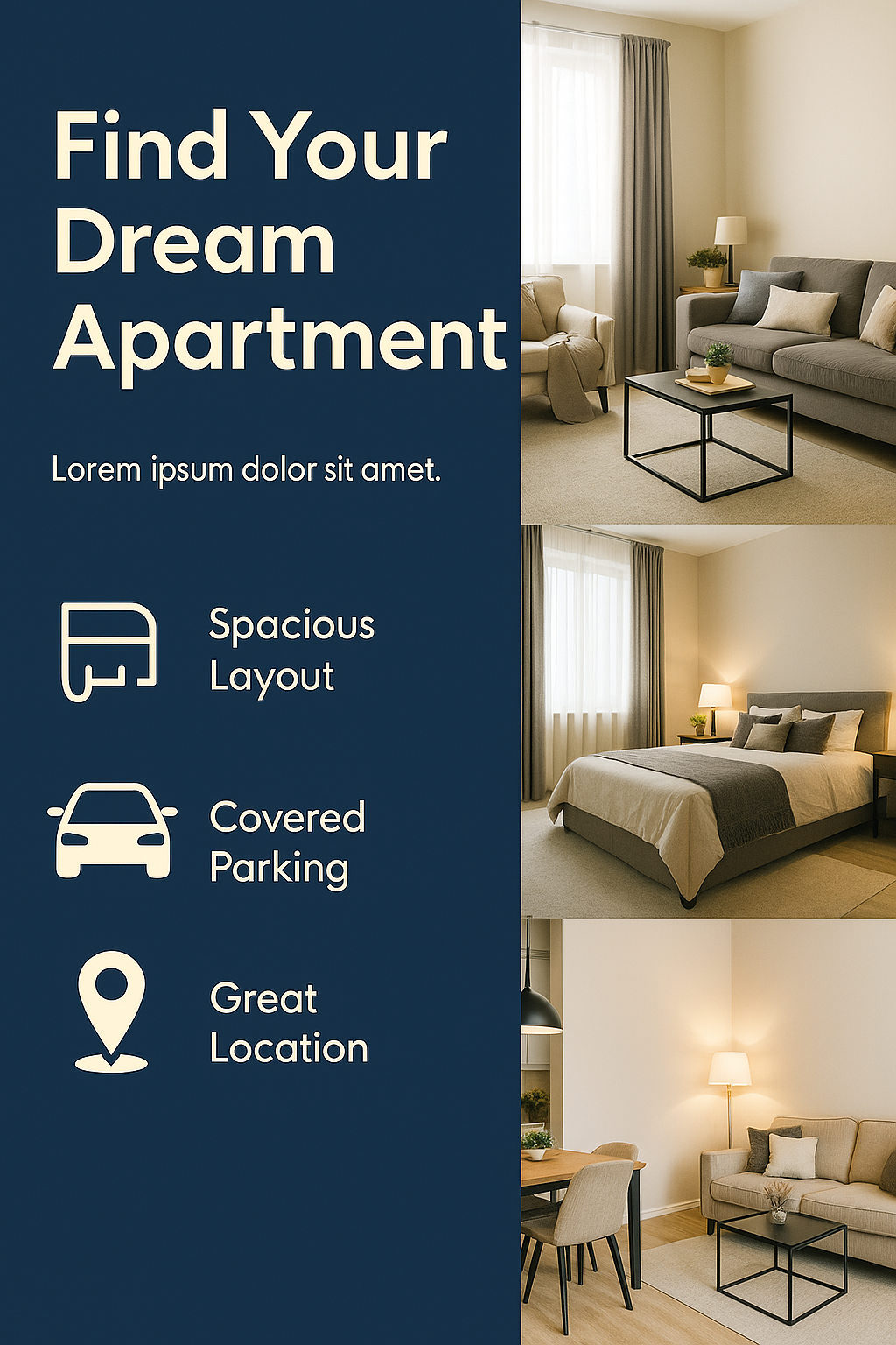 Real Estate Promotion Graphic Featuring Apartment Highlights