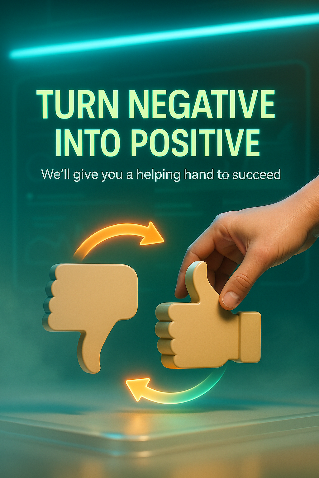 An engaging motivational graphic featuring a hand transforming a negative symbol into a positive one, designed to inspire and encourage personal growth. Ideal for social media or promotional content.