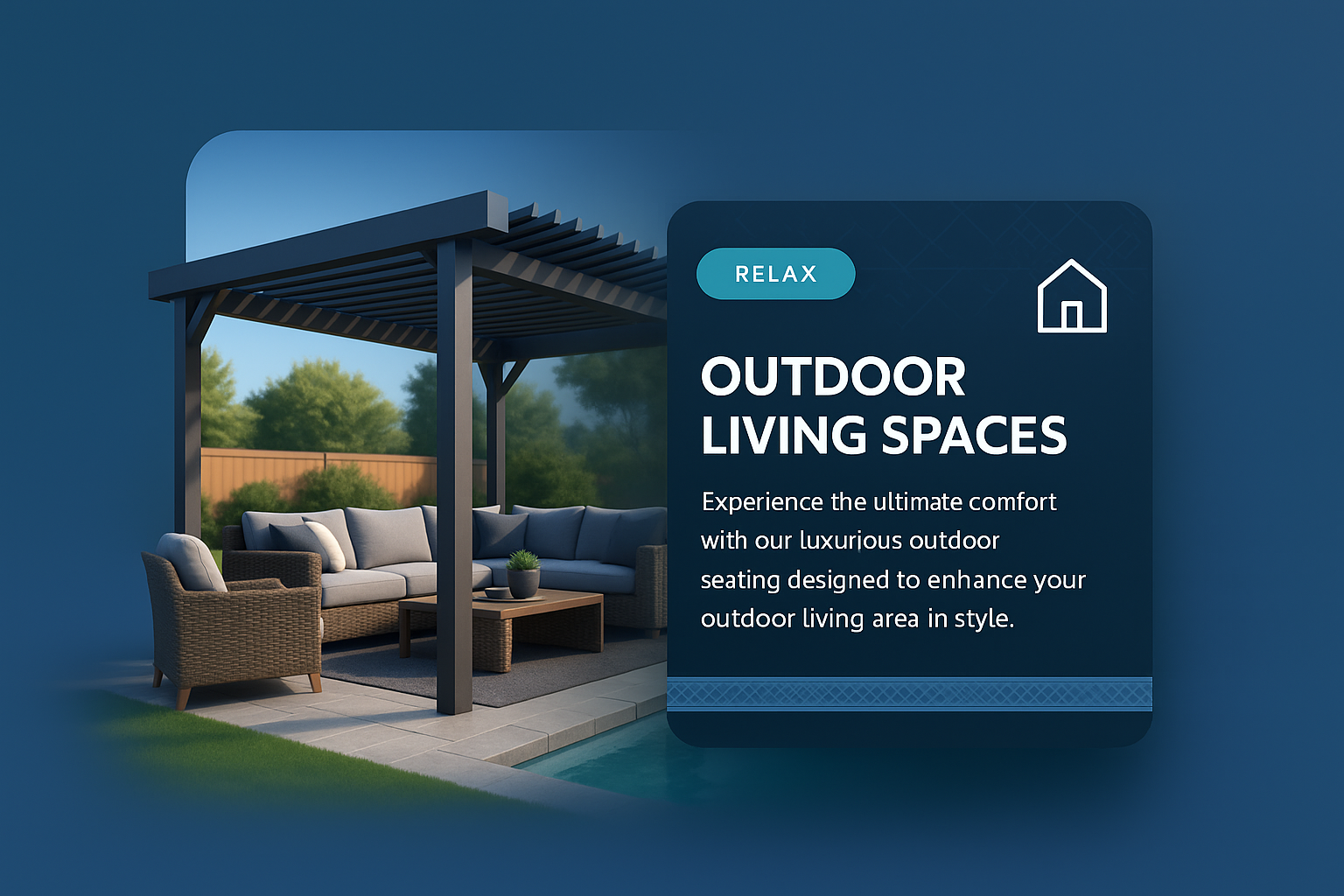 Stylish Backyard Poolside Living Space with Pergola