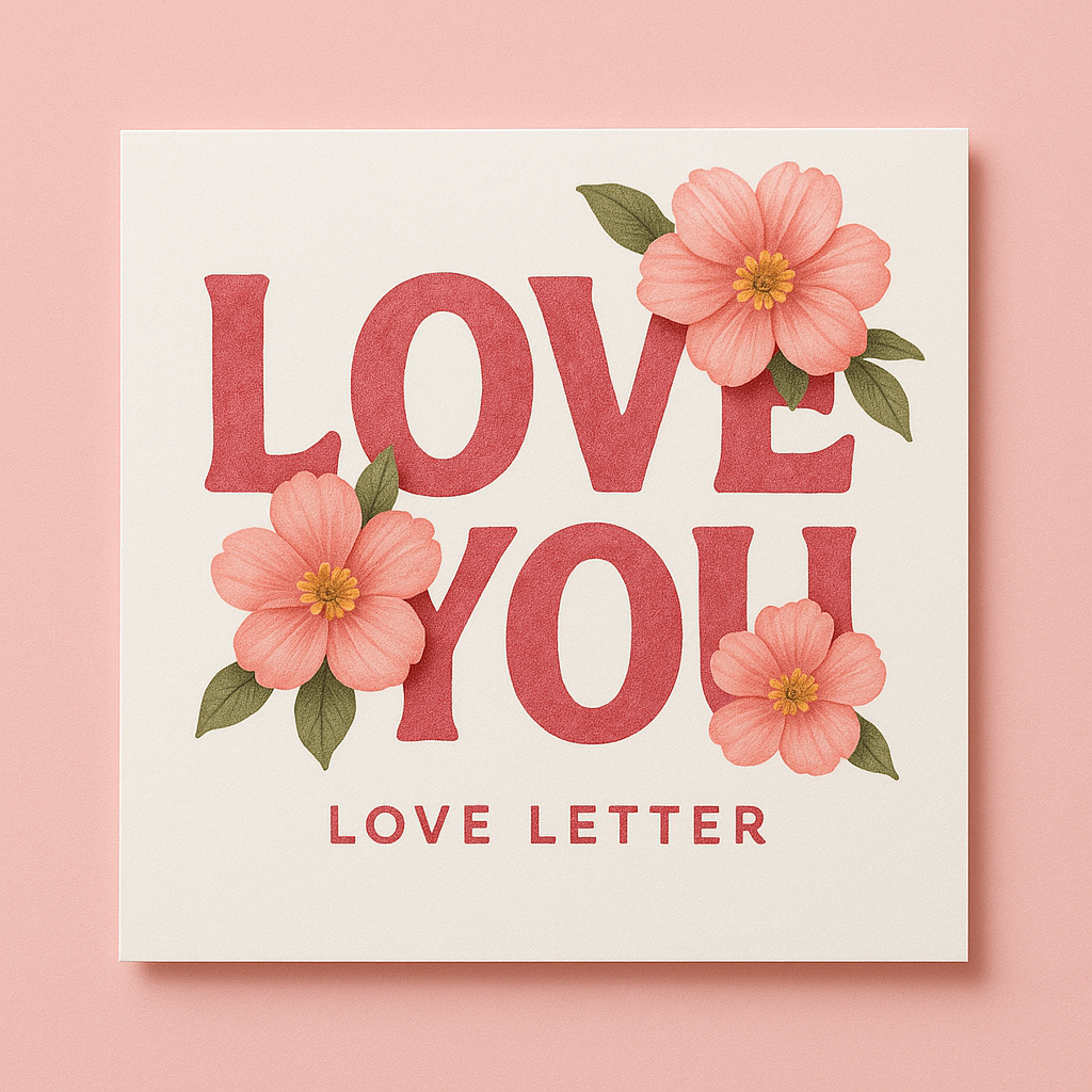 Charming square graphic featuring the phrase 'Love You' adorned with delicate floral elements, perfect for greeting cards or romantic messages.