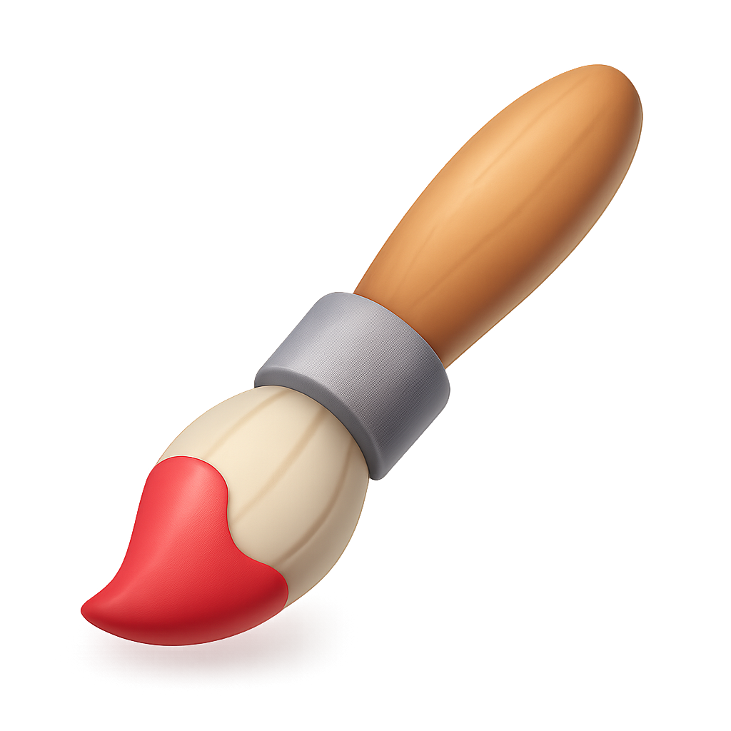 /Collection: /by davooda/Type: PNG/A visually appealing 3D icon of an art brush featuring a wooden handle and a vibrant red tip. The design showcases a three-quarter view with a transparent background, emphasizing its volumetric and isometric qualities.