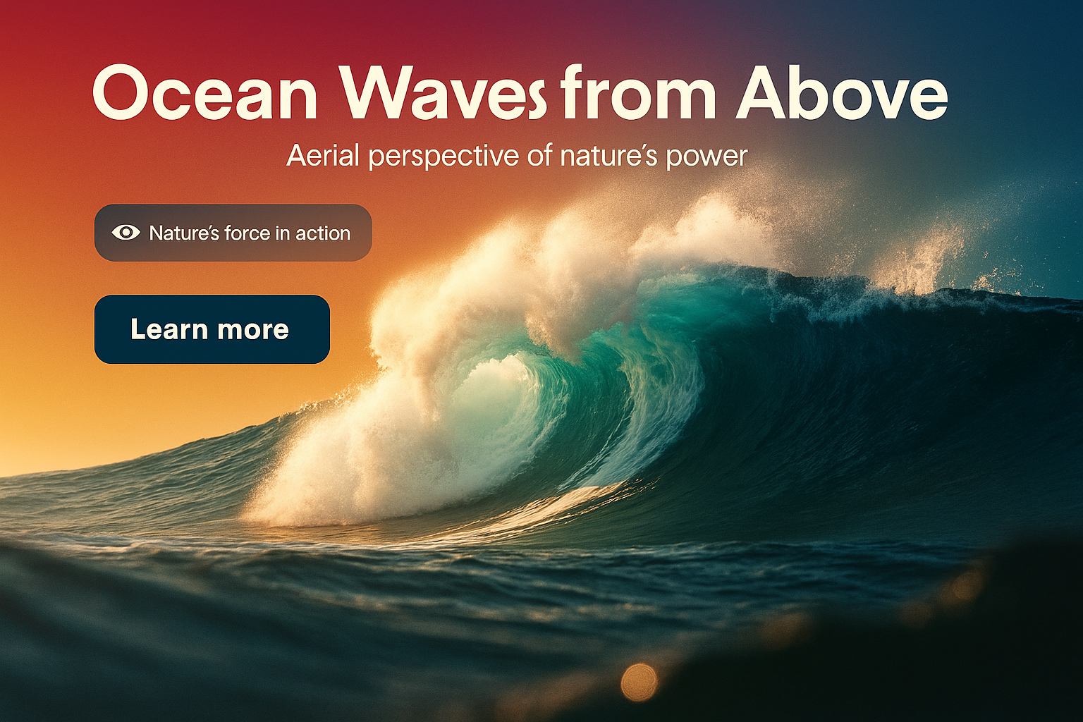 /Collection: /by davooda/Type: PNG/A captivating aerial view of ocean waves crashing with vibrant colors highlighting the dynamic force of nature. The image features a blurred foreground for depth and a compelling call-to-action.