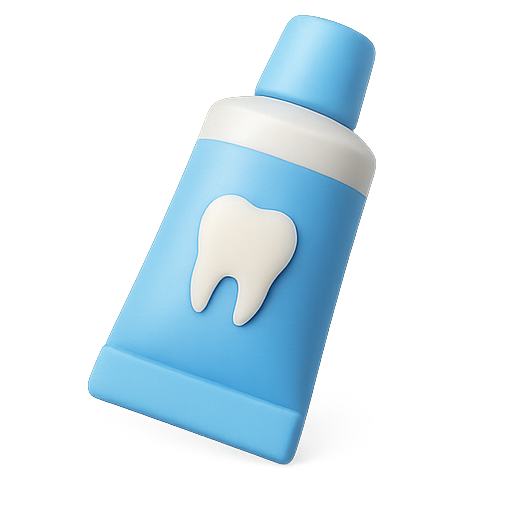 A stylized 3D graphic of a toothpaste tube featuring a tooth icon, suitable for dental care branding or promotional materials. The design is playful and modern, appealing to a wide audience.