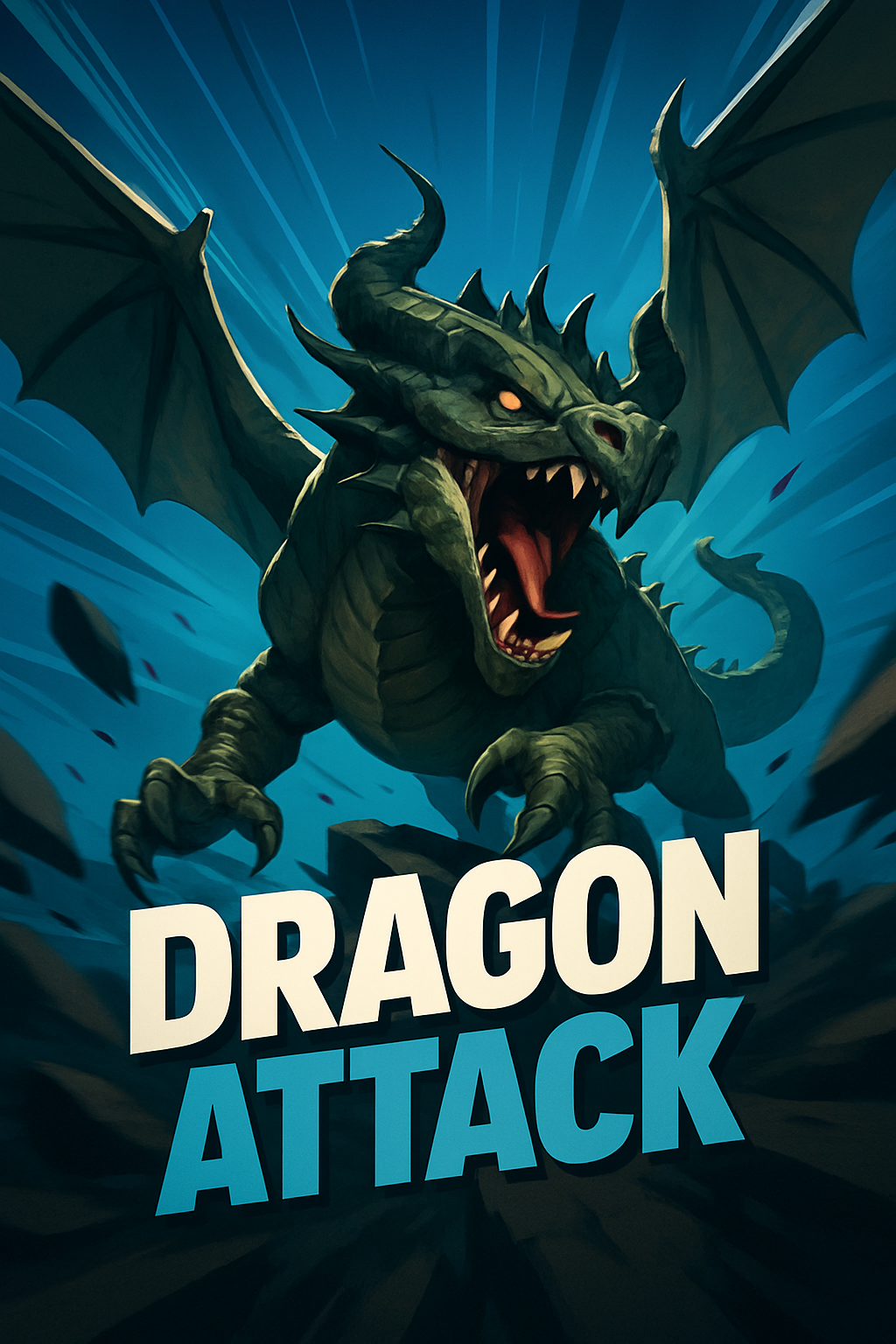 /Collection: /by davooda/Type: PNG/A fierce dragon with outstretched wings is depicted mid-attack, surrounded by dynamic lines and a gradient background. The bold title 'DRAGON ATTACK' adds intensity to the scene.