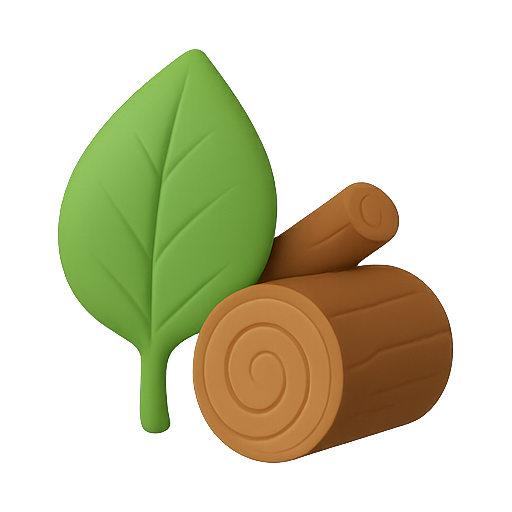 A vibrant and stylized graphic featuring a green leaf and two brown logs, symbolizing nature and sustainability, ideal for eco-friendly themes and environmental campaigns.