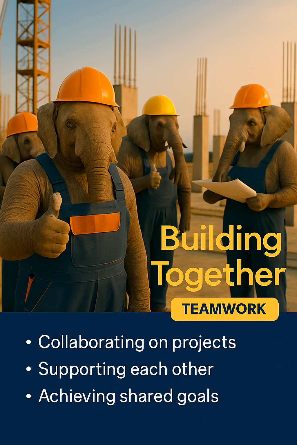 Playful Teamwork Concept Featuring Elephants in Hard Hats